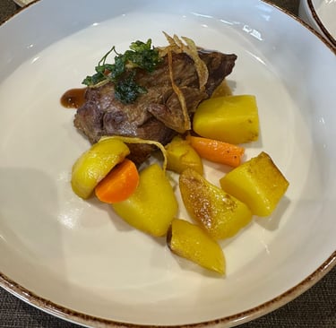 Shown in Image 1 below, this plate was a highlight — tender veal, gently cooked to maintain deep flavor and texture. Paired with soft potatoes and carrots, the dish carried the kind of honest, home-rooted taste one expects from traditional Albanian cuisine, but executed with finesse and clean presentation.